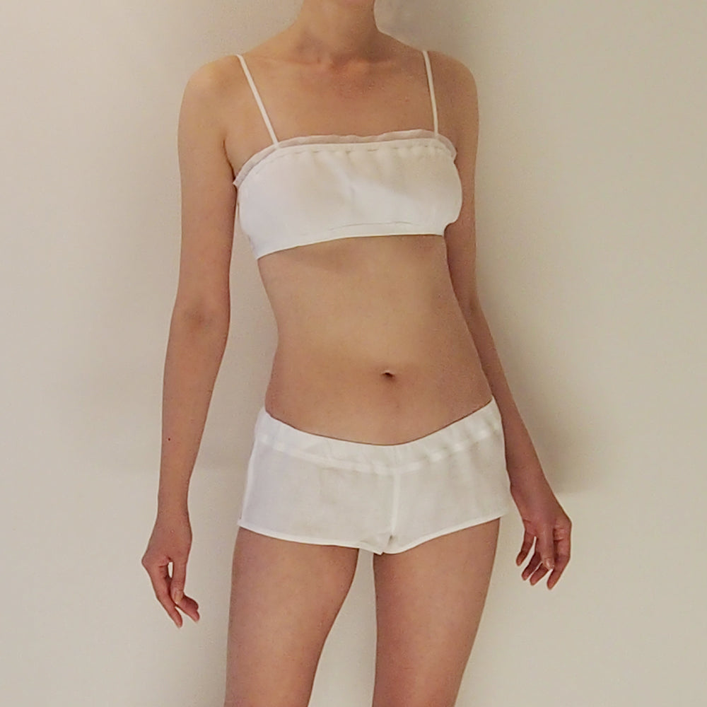 上質な綿オーガンジーがアクセントの、ストラップが外せるチューブトップブラ。