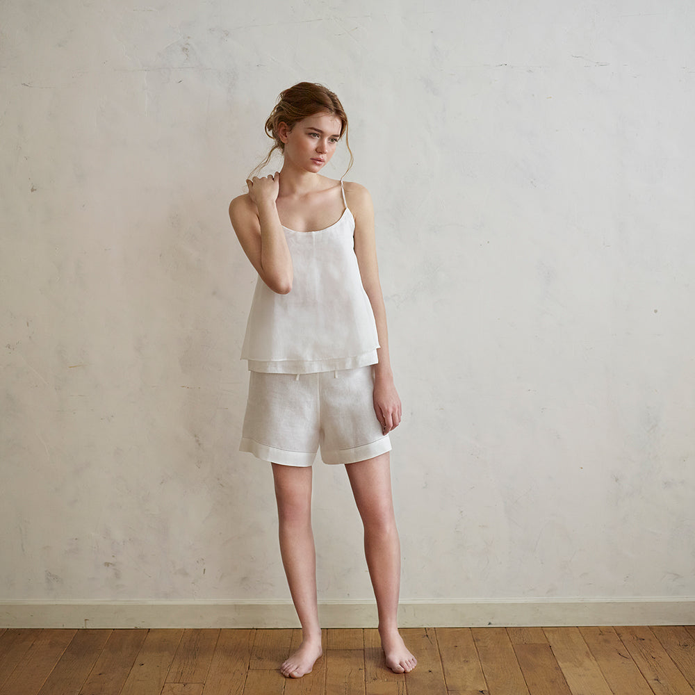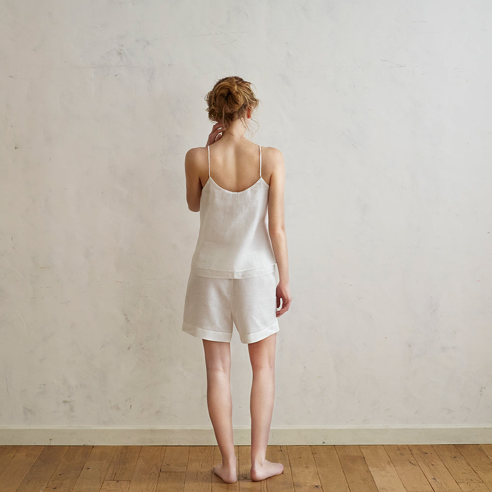 重ね合わせた上質な麻と綿が織り成すキャミソールの独特のエアリー感。