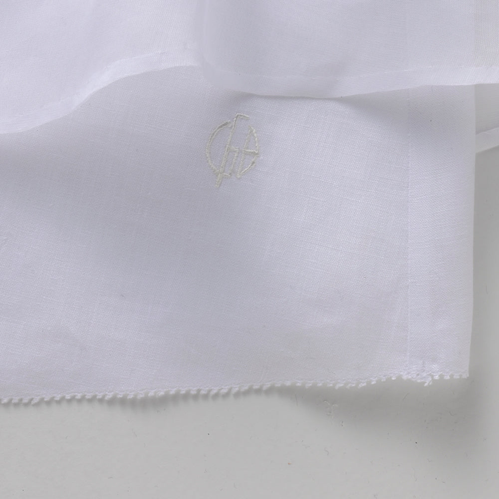 透け感のある綿オーガンジーをめくると、ロゴ刺繍が出てくる心にくい演出をしています。