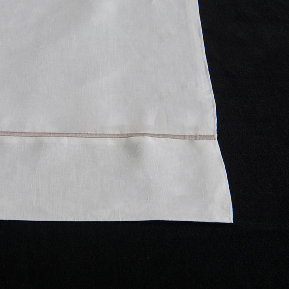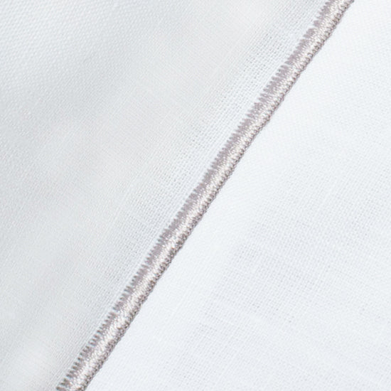 シンプルな中に、ほんの少しだけ特別な手仕事を。 三方を囲む直線の刺繍が、リネンの質感に凛とした表情を加え、 眠る空間をやさしく整えてくれます。