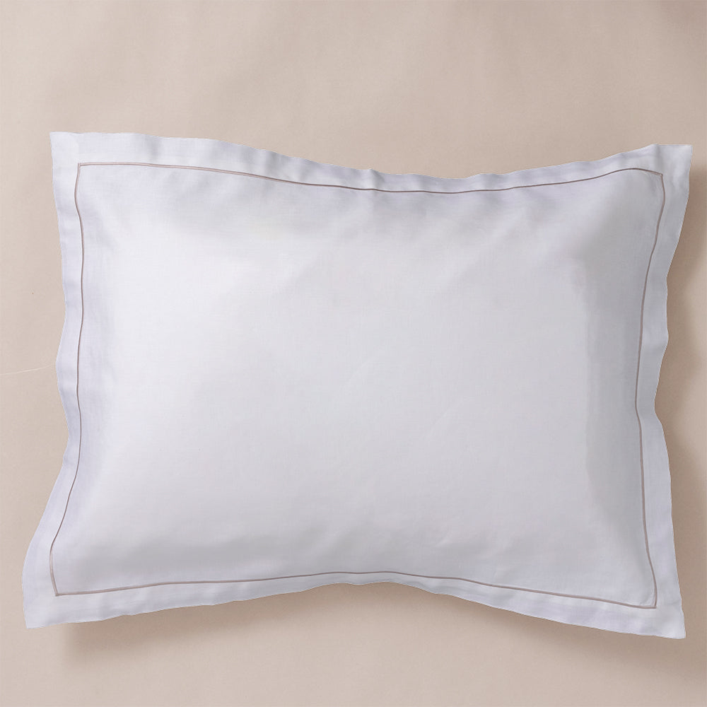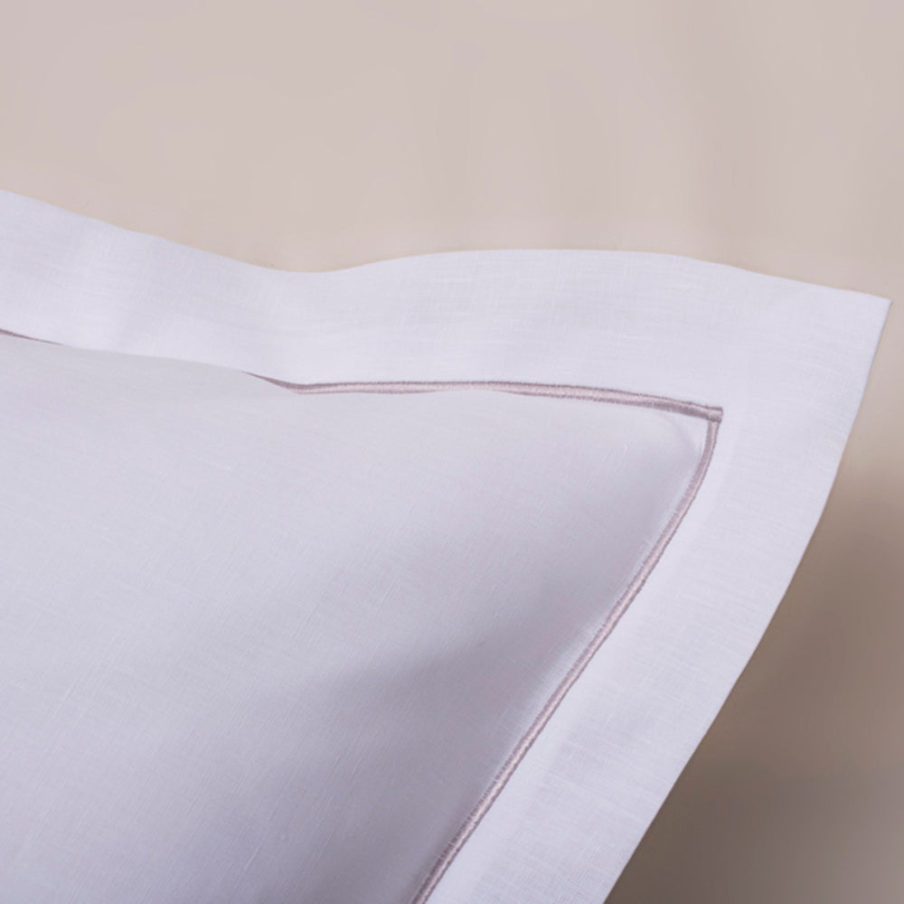 枕元にそっと佇む、リネンの枕カバー。 その縁には、まっすぐな刺繍が一筋。 シンプルで洗練された仕立てのなかに、 ほんの少しだけ特別なニュアンスを添えています