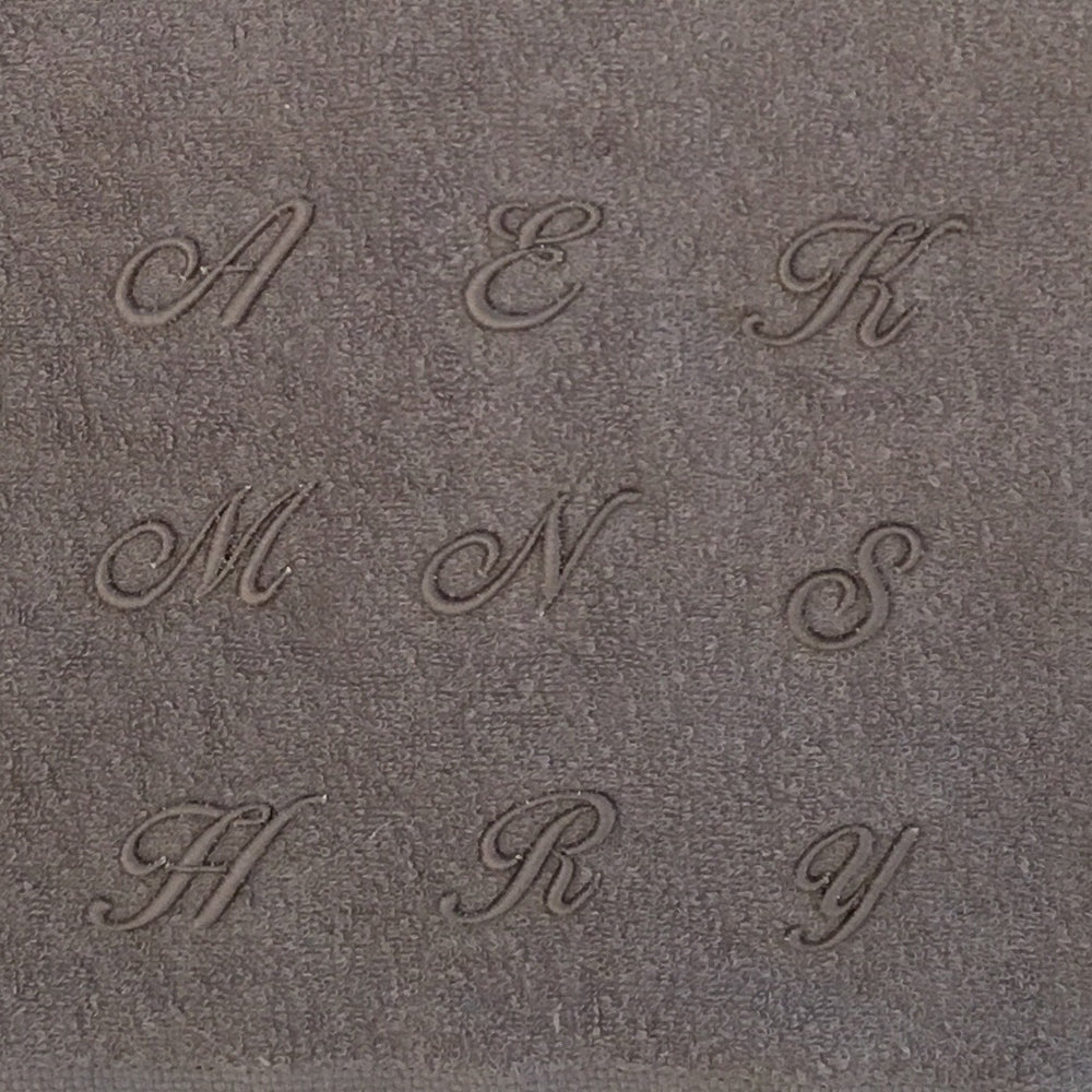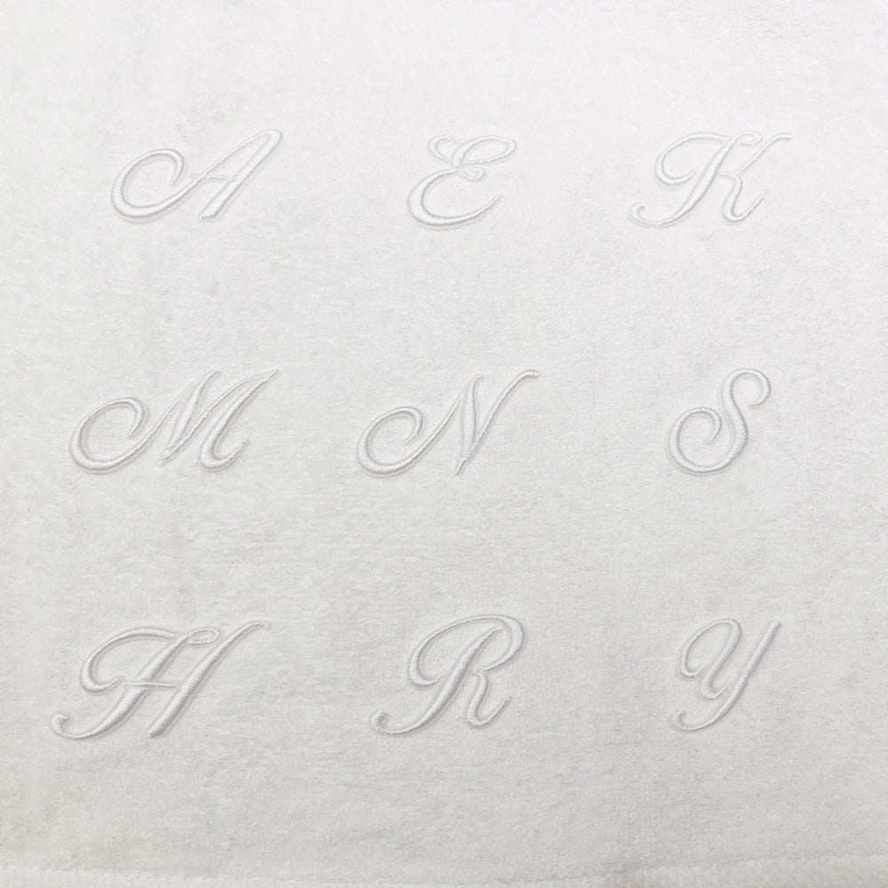 書体はスクリプト体のみ。刺繍カラーはタオルと同色となります。