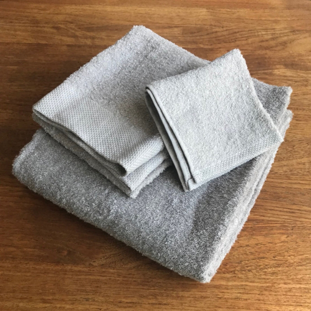 麻糸では難しいパイルタオルに仕上げるために、上質な極細亜麻を一本の糸に仕上げ、日本の高い技術を持った職人が織り上げたタオル。綿のタオルより、ややシャリ感のある風合いで、麻素材の機能性により吸水性と速乾性に優れ、衛生的で爽やかな使い心地を実現してくれます。