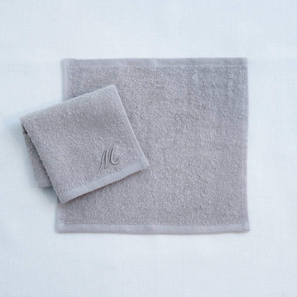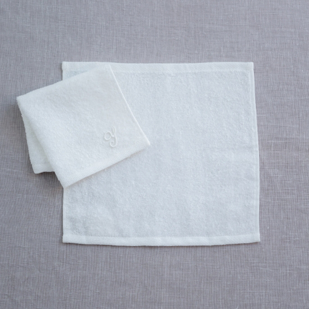 タオルへのイニシャル刺繍はパイルに埋もれないよう、立体刺繍を施しております。